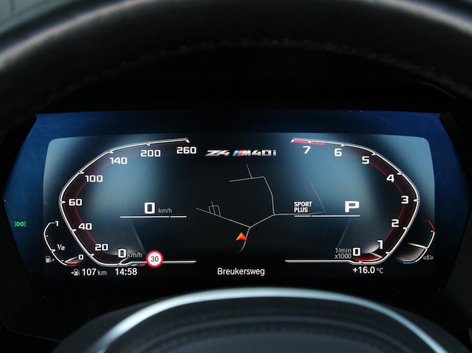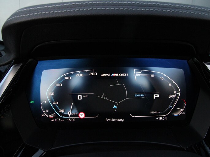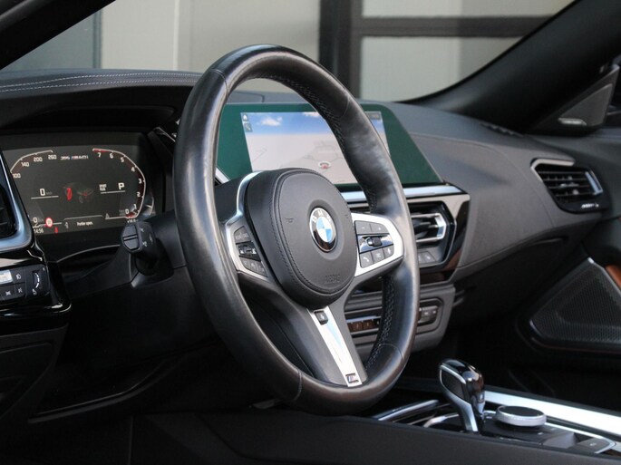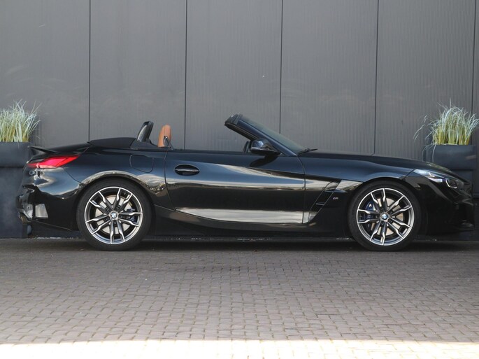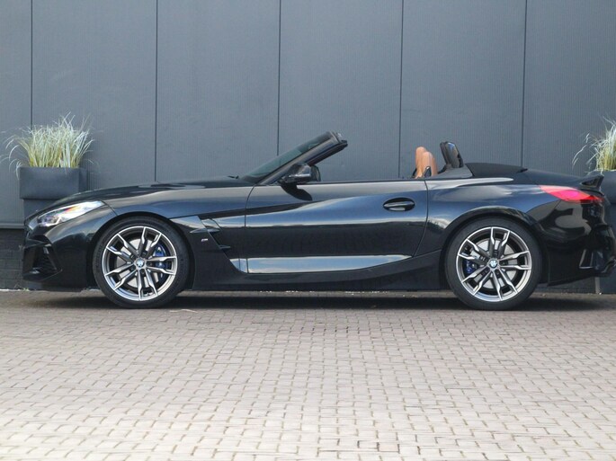 Zeer goed onderhouden BMW Z4 in de gewilde M40i uitvoering. Smaakvolle combinatie van Saphir Zwart metallic met zwarte grille en spiegelkappen, Cerium Grey velgen en het vernasca leder in uitgevoerd in Cognac met contraststiksel.