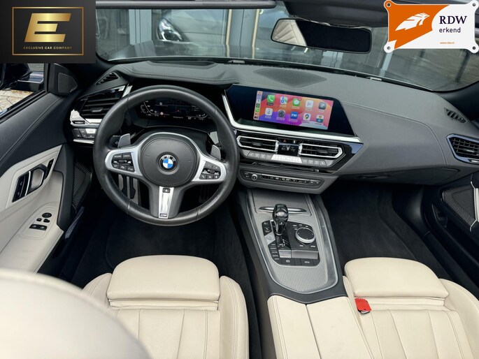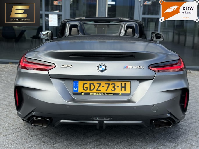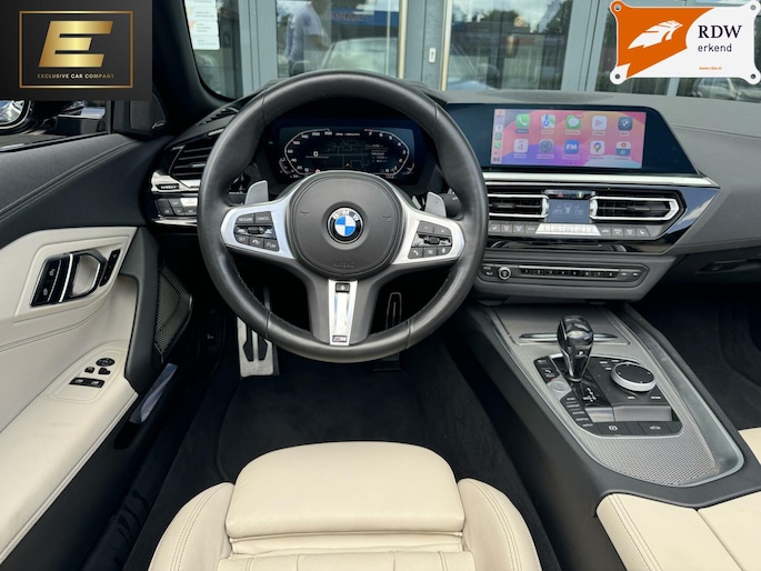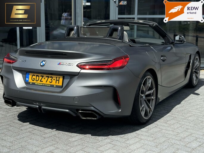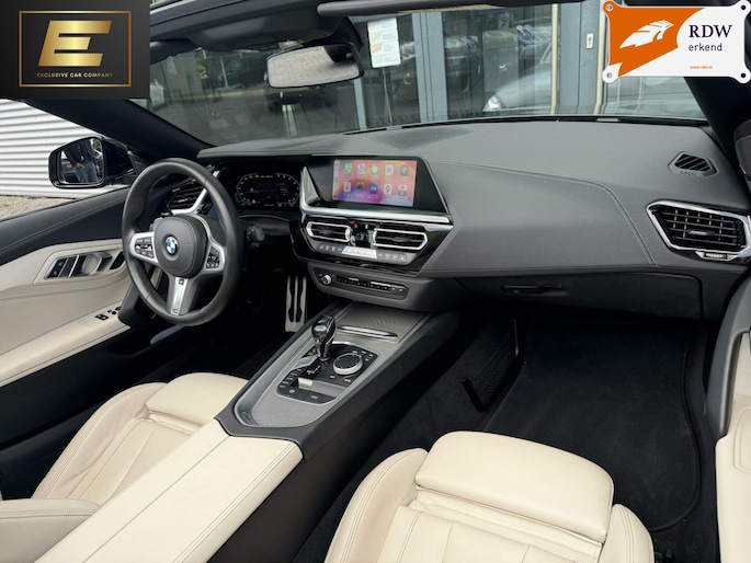 Deze prachtige BMW Z4 M40i in de unieke kleur Frozen Grey Metallic is de perfecte auto om lekker met het dak open te genieten van het mooie weer. De auto zit bomvol opties zoals: head-up display, stoelverwarming, stuurwielverwarming, Apple carplay, adaptive cruisecontrol, 19inch originele BMW velgen, wit lederen interieur, achteruitrijcamera en de welbekende 340PK sterke 3.0L zes-in-lijn motor. (B58). De auto is voorzien van het shadowline pakket. Dit houdt in dat sierdelen zoals de grill, luchthappers en beugels hoogglans zwart zijn. De auto is bij 40.000 km voorzien van een onderhoudsbeurt en nieuwe Michelin banden. Interesse? Mail, bel of WhatsApp ons!