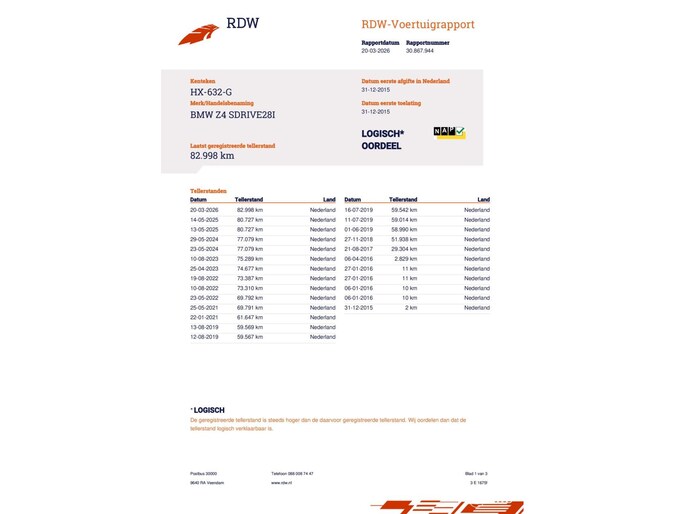 Kilometerstand gecontroleerd