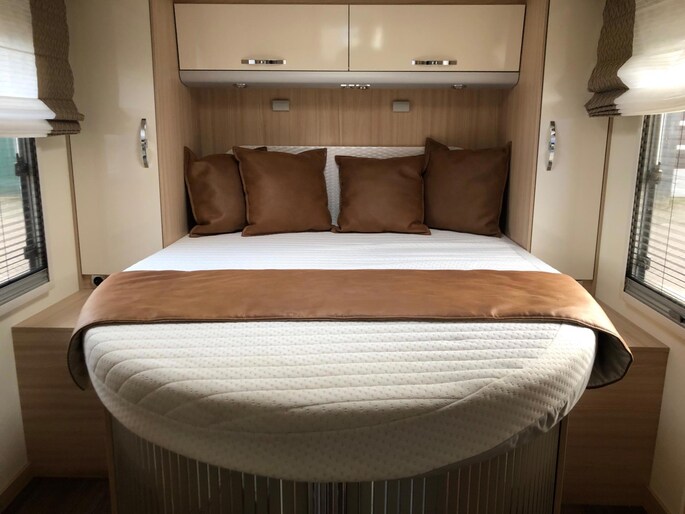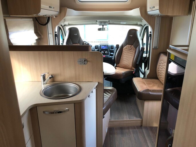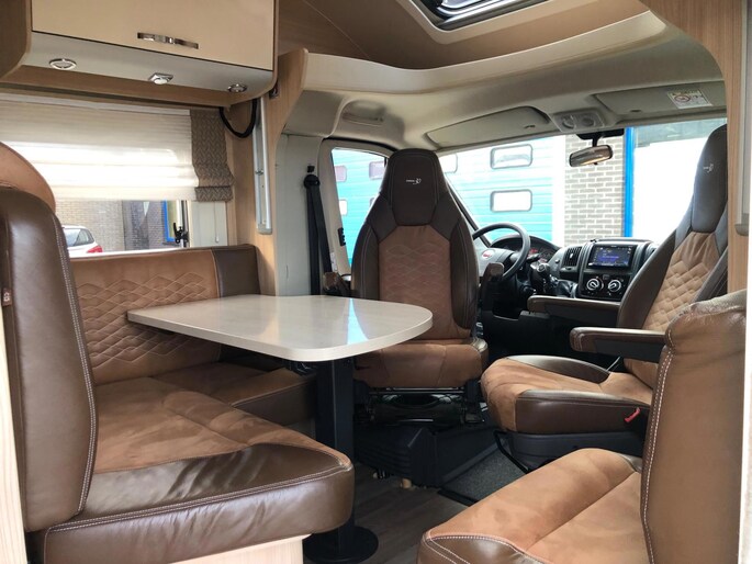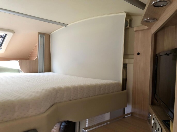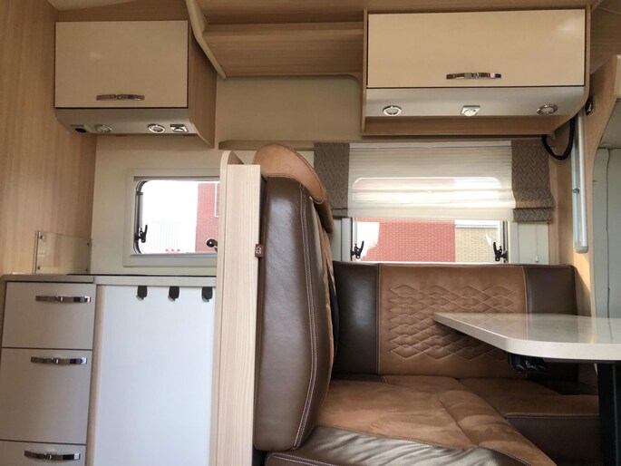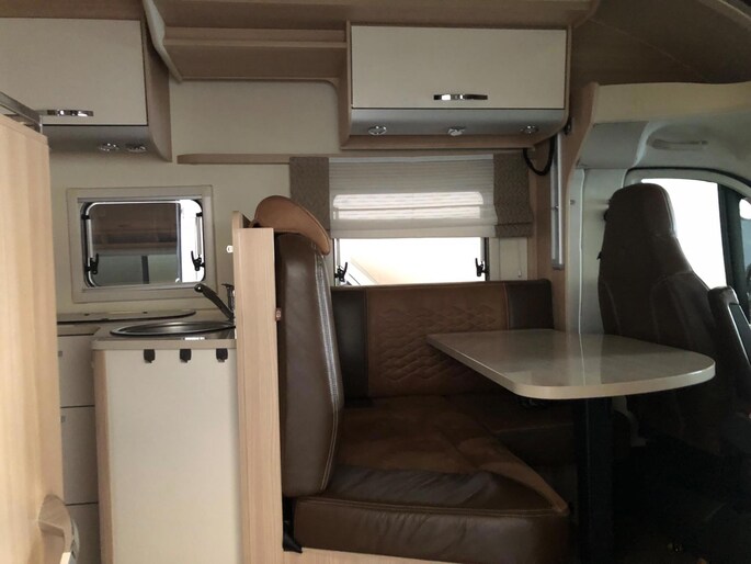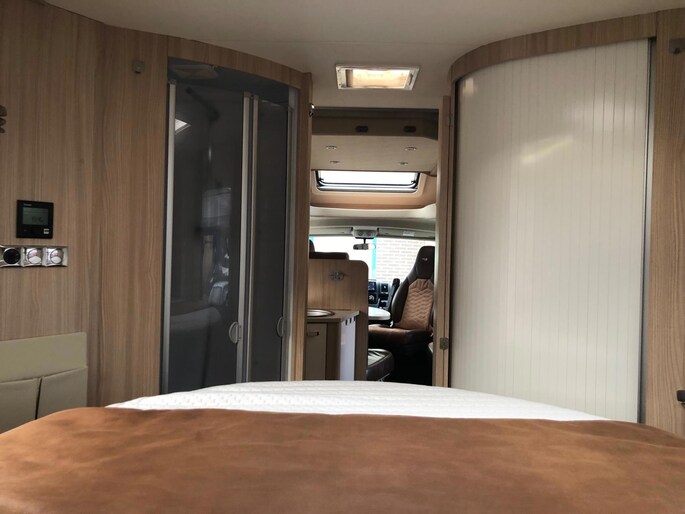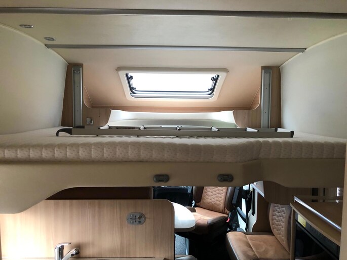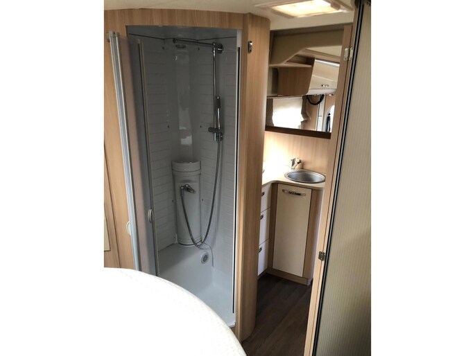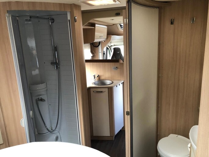 Zeer nette en goed onderhouden camper met een fijne indeling , een groot Queensbed en elektrisch hefbed boven de zithoek , en met aparte douche en toilet met wasbak en onderhoudshistorie compleet aanwezig.