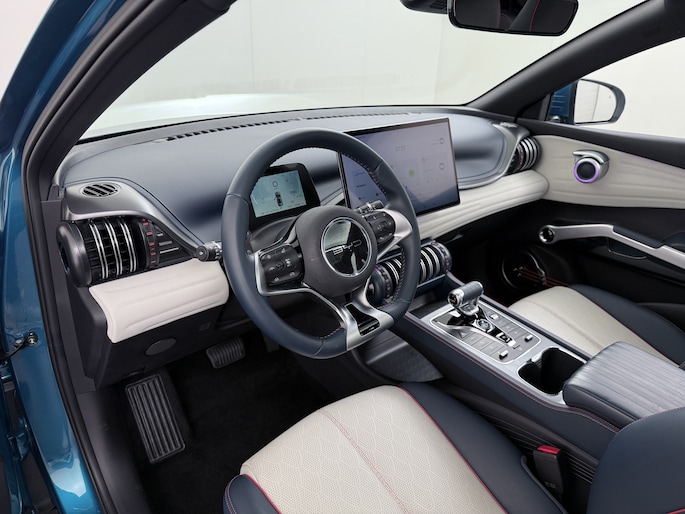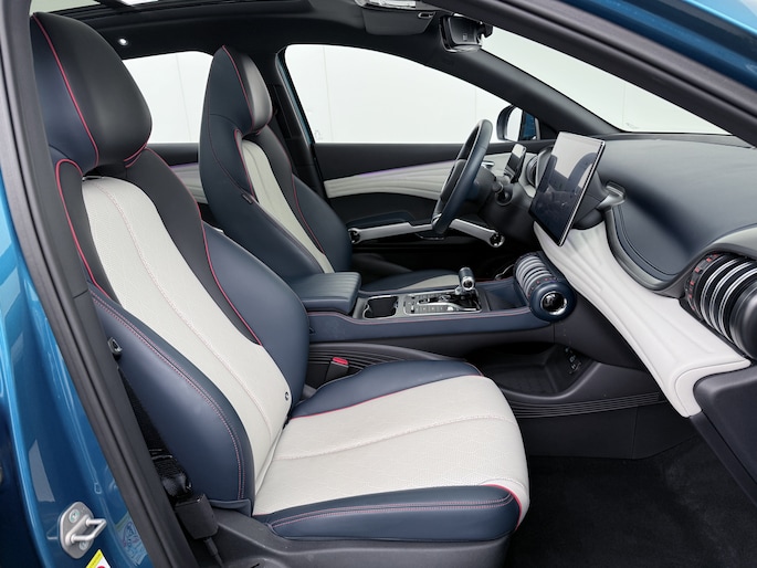62kWh 204pk Design SOH 94% Pano-dak Leer+Elektr.Verst. Warmtepomp Adaptieve Cruise 360°Camera Apple Carplay Android Auto Elektr.Achterklep Design Verkeersbord detectie WiFi DAB Led Rijstrooksensor Keyless Smartphone Entry Fabrieksgarantie tot 12-12-2030/150.000km Garantie. Op de LFP Accu tot 20-12-2030/200.000km €44.000,- Nieuw!
