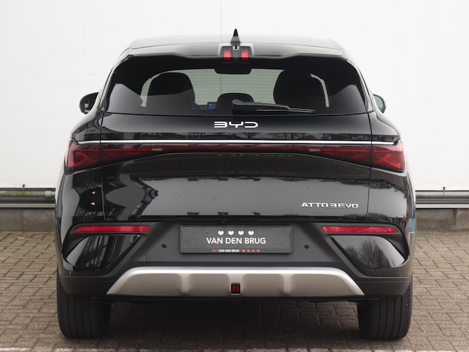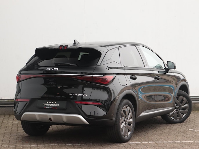 Hij is doordacht innovatief en duurzaam als geen ander: de elektrische BYD ATTO 3 EVO biedt met zijn elektrische aandrijving een ongekende rijervaring. Dankzij de automatische transmissie en elektrische aandrijving, navigeer je gemakkelijk door het verkeer. Het gaat hier om een nieuwe auto, hij is nu direct leverbaar. Deze BYD ATTO 3 EVO legt bestuurder én bijrijder compleet in de watten met de verwarmbare voorstoelen. Met een druk op de knop gaat de elektrische achterklep open. Het glazen panoramadak zorgt voor een onovertroffen uitzicht. Opwarmen in koude dagen? Pak het verwarmd stuurwiel met beide handen aan! De uitmonstering van deze auto wordt gecompleteerd door onder meer 18 inch lichtmetalen velgen, LED koplampen, extra getint glas, in delen neerklapbare achterbank, LED-achterlichten en snelheidsafhankelijke stuurbekrachtiging.
