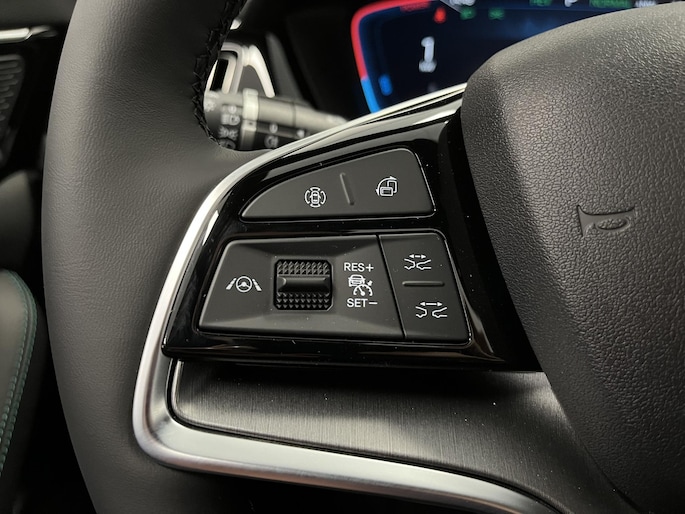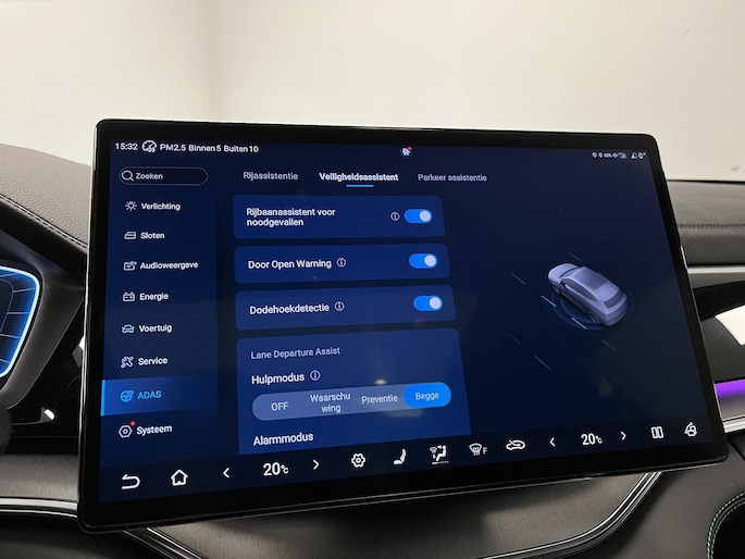 In deze auto zijn verschillende technologieën aanwezig die voor u het verkeer en de omgeving in de gaten houden en die desnoods ook kunnen remmen of bijsturen. U verliest de weg geen seconde uit het oog. De dashboardinfo wordt in uw zichtveld geprojecteerd door de head-up display. Verkeersborddetectie herkent tijdelijke en permanente verkeersborden langs en boven de weg. Het Lane-keeping systeem zorgt dat u mooi binnen de lijntjes blijft. Ongemerkt buiten de rijstrook komen is er niet meer bij. Dankzij veiligheidsvoorzieningen als dodehoekdetectie, forward collision warning system, hill hold functie, brake assist, vermoeidheidsherkenning en bandenspanningcontrolesysteem, bent u steeds veilig onderweg.