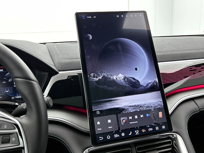 ? Topuitrusting standaard: panoramisch glazen dak, 19″ lichtmetalen velgen, Apple CarPlay & Android Auto, 360° camera, blind spot monitor …
