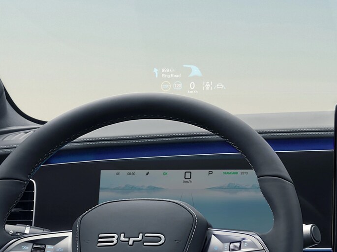 Geavanceerde technische systemen houden tijdens elke rit het verkeer in de gaten en reageren op potentieel gevaarlijke situaties. In het instrumentarium kun je bovendien de verkeersborden zien die je onderweg tegenkomt. Zo helpt deze BYD jou om veiliger te rijden. Het Lane-keeping systeem registreert permanent of je binnen de lijnen van de rijstrook blijft; dwaal je onbedoeld af, dan waarschuwt het systeem en corrigeert de koers. Onbedoeld bumperkleven is er niet bij, dankzij de forward collision warning. Die waarschuwt direct als een botsrisico met je voorligger dreigt. Ook helpen het dodehoekdetectie, hill hold functie, vermoeidheidsherkenning, autonoom remsysteem en bandenspanningcontrolesysteem, jouw rit tot een veilige rit te maken.