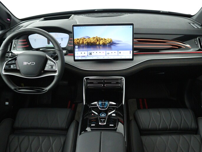 Valt u voor de styling van deze byd TANG? Of gaat u voor de slimme techniek? Wat u ook kiest, u krijgt altijd een auto met een volledig elektrische aandrijflijn. Met de combinatie van elektrische aandrijving en automatische transmissie manoeuvreert u soepel door het verkeer. Deze auto uit 2025 heeft nauwelijks gereden, met een tellerstand van slechts 1500 kilometer. De krachtige motor geeft deze byd uitstekende prestaties. Binnenin zien we een fraai afgewerkt lederen interieur. 's Winters komen de verwarmbare voorstoelen heerlijk van pas. En ze zijn ook nog eens voorzien van massagefunctie. De achterklep opent automatisch met een druk op de knop. Handig als u met volle handen staat. Het glazen panoramadak zorgt ervoor dat u zich omringd voelt door de omgeving. Geen gekleum meer in de koude dagen. Het verwarmd stuurwiel voelt als een weldaad na het ijskrabben. Als u een gevarieerd leven leidt, wilt u ook flexibel zijn. Daarom heeft deze byd TANG een derde zitrij, die u net zo gemakkelijk weer wegklapt voor meer bagageruimte. Bij de uitrusting van deze byd horen onder meer 21 inch lichtmetalen velgen, LED koplampen, warmtewerend glas, aluminium dakrailing, in delen neerklapbare achterbank en LED-achterlichten.