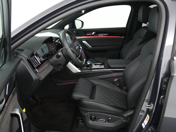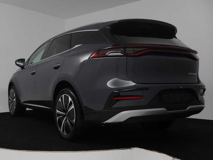 Hij levert uitstekende prestaties en doet dat met zorg voor het milieu. Maar tegelijk is de byd TANG ook gewoon een auto die u volop ruimte en comfort biedt. Dankzij de geavanceerde batterijtechnologie hebt u met deze auto een rijbereik dat ruim voldoende is voor de meeste dagelijkse ritten. En u zult zien, de tijd die nodig is om de batterij op te laden, valt enorm mee. Het gaat hier om een nieuwe auto, hij is nu direct leverbaar. De krachtige motor geeft deze byd uitstekende prestaties. Een lederen interieur, een derde zitrij en een elektrisch bedienbare achterklep: dat mag u ruim uitgevoerd noemen. Beide verwarmbare voorstoelen hebben een geavanceerde massagefunctie, zodat u ook na een lange rit soepel uitstapt. Net als uw bijrijder. Het panoramadak zorgt voor zicht, licht en een enorm ruimtelijk gevoel. Bij de uitrusting van deze byd horen onder meer 21 inch lichtmetalen velgen, LED koplampen, warmtewerend glas, in delen neerklapbare achterbank, LED-achterlichten en snelheidsafhankelijke stuurbekrachtiging.