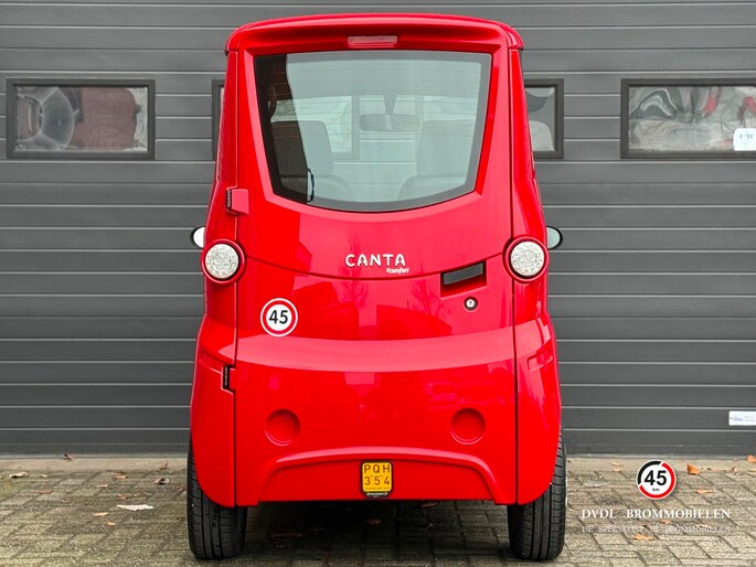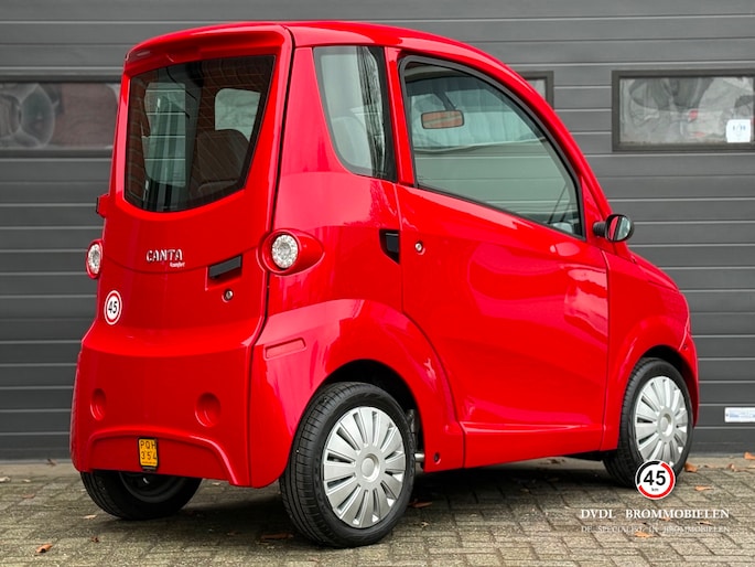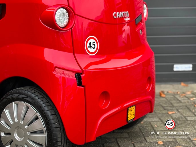 De Canta is speciaal ontworpen voor mensen die een compact, comfortabel en praktisch vervoermiddel zoeken. Dankzij het slanke ontwerp past de Canta makkelijk in krappe parkeerruimtes en mag deze op de stoep geparkeerd worden in veel gemeenten. Bovendien biedt de brommobiel uitstekend zicht rondom, waardoor u zich veilig voelt in het verkeer.