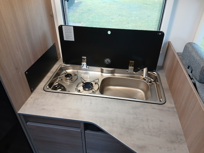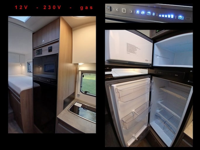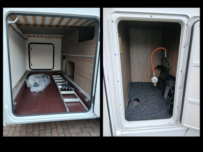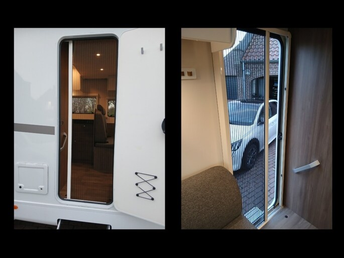 Combi 6 gasverwarming Stoelen voor draaibaar Boiler Douche en WC Gaskookplaat 2 pits Koelkast met apart vriesvak Fietsendrager voor 3 fietsen Alle ramen voorzien van horren en verduistering Enz. enz.