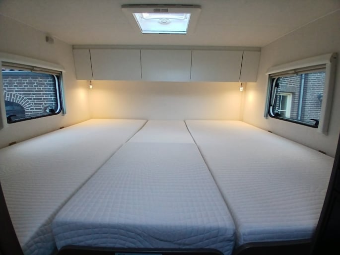 Met het optionele hefbed omhoog heb je nog steeds 1,90 mtr. hoogte over, voldoende ruimte ook voor grotere personen. Eventueel 5e slaap- plaats krijg je door ombouw van de zithoek.