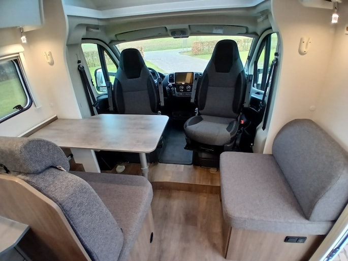 Direct van de eerste particuliere eigenaar (dus GEEN verhuurverleden!), goed onderhouden half integraal, van 4-2025 met 11800 km op de klok. Nieuwste model Fiat Multijet met 5 zit- en slaap- plaatsen.