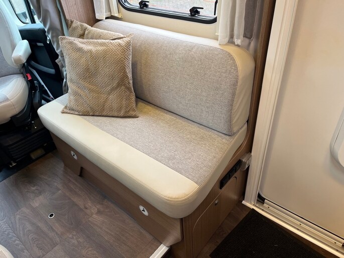 Voorzien van enkele bedden met tussen stuk te wijzigen in een riant 2 persoonsbed. Voorin een mechanisch te bedienen hefbed met eveneens een ruime afmeting geschikt voor 2 personen. De camper beschikt overigens over 5 gordelplaatsen geregistreerd door het RDW.