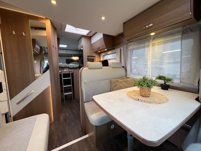 Enkele highlights op een rij tw.: -Enkele bedden en hefbed -4 slaapplaatsen en 5 gordelplaatsen -Zonnepaneel -XXL koelkast -XXL garage -Riante badkamer met klapwand douche toilet wasgelegenheid kast en spiegel -Ruime keuken met 3 pits gascomfort en wasgelegenheid -LED verlichting -BearLock anti-diefstal -Achteruitrijcamera -Truma combiboiler -TV -etc.