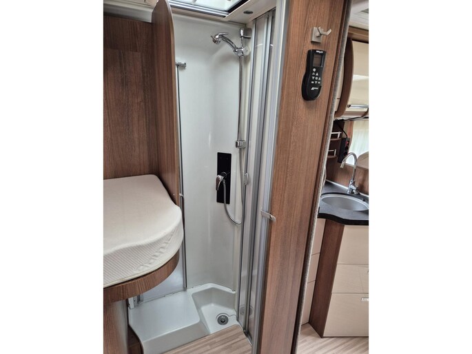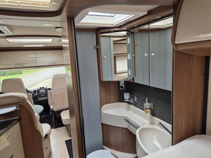 Deze Carthago staat bekend om zijn hoogwaardige en solide kwaliteit en is uitgerust met de gewilde enkele lengtebedden in een afsluitbare slaapkamer, direct grenzend aan de badkamer met separate douchecel.