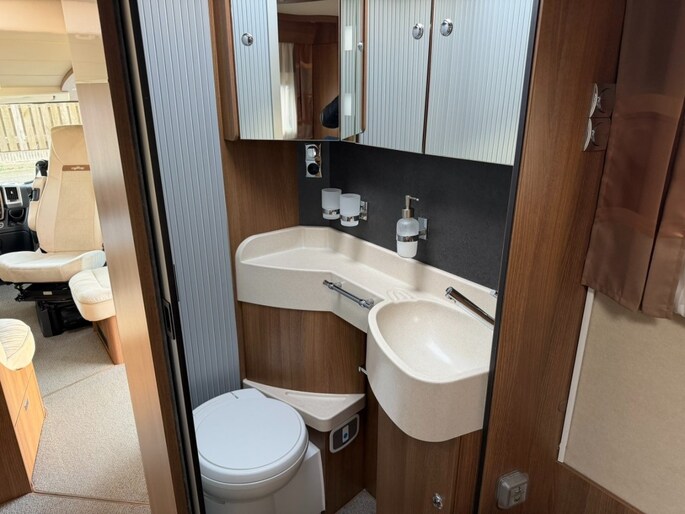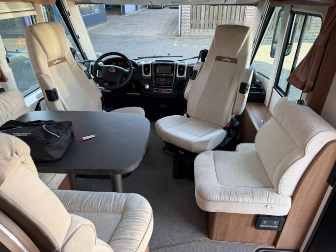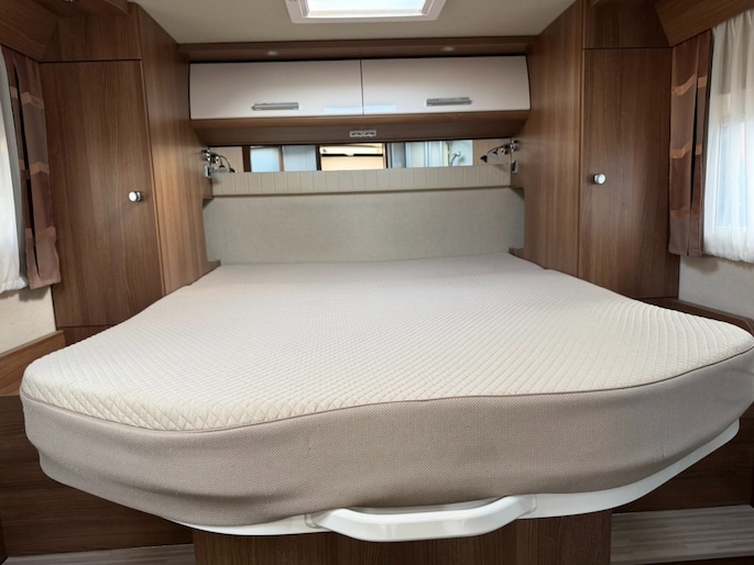 E&P levelsysteem Luchtvering Queensbed + Hefbed 4 Slaapplaatsen Boiler Gascomfoor (Aantal pitten: 3) Koelkast met vriesvak Ladekast Afvalwatertank (vast) Cassettetoilet Chemisch toilet Douche Schoonwatertank (vast) Toilet Wasruimte Waterniveaumeter Radio CD Televisie Televisiebeugel Verwarming Ringverwarming Bestuurdersdeur Buitenlamp Combicassettes Dakluik Dakluik groot Elektrische opstap Garage achter Hordeur Huishoudaccu Leeslampjes Luifel Verduistering cabine Dagrijverlichting Led Achteruitrijcamera Airco op motor Audioinstallatie Bearlock