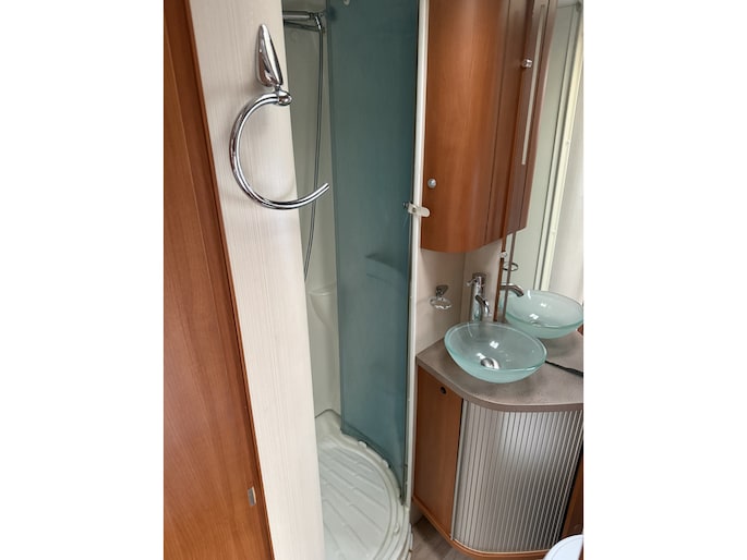 De camper is voorzien van een airco in het auto deel EN een dak airco voor het camperdeel.