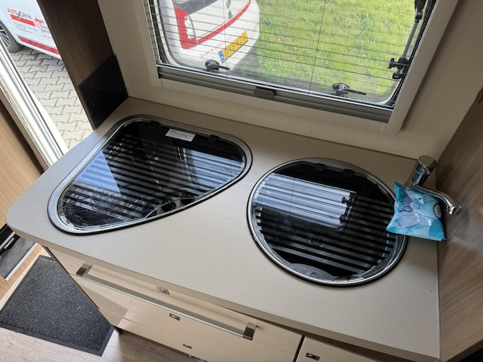Keurig nette 6 persoons Camper van 1e eigenaar, camper is voorzien van achter 2 stapelbedden, voor vast bed, en treinzit kan omgebouwd worden voor 2 persoons bed. Camper is voorzien van Fiamma Luifel, achter is een grote garage, Fietsenrek voor 4 personen. Voorzien van dousche en toilet , boiler, grote koelkast met vriesvak. Camper is instapklaar, voorzien van 4 nieuwe Continental banden i.v.m. leeftijd.