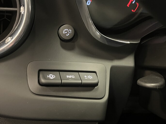- Head-Up Display met digitale kleurenweergave voor voertuigsnelheid, geselecteerde versnelling, g-kracht, audiosysteeminformatie, grootlichtindicator, kompas, buitentemperatuur, richtingaanwijzers, toerenteller, voertuigmeldingen en telefooninformatie