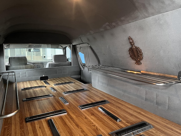 Een unieke en karaktervolle rouwauto met krachtige V8 motor, geschikt voor professioneel gebruik of als bijzonder verzamelobject.