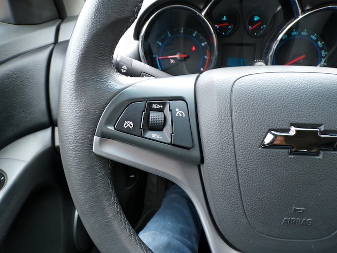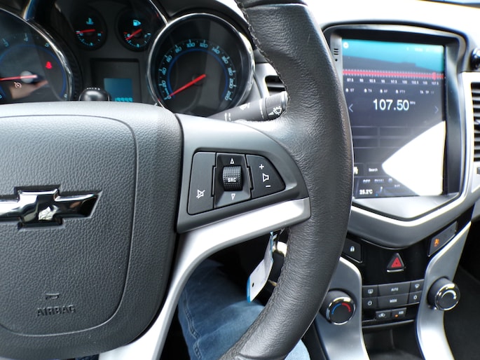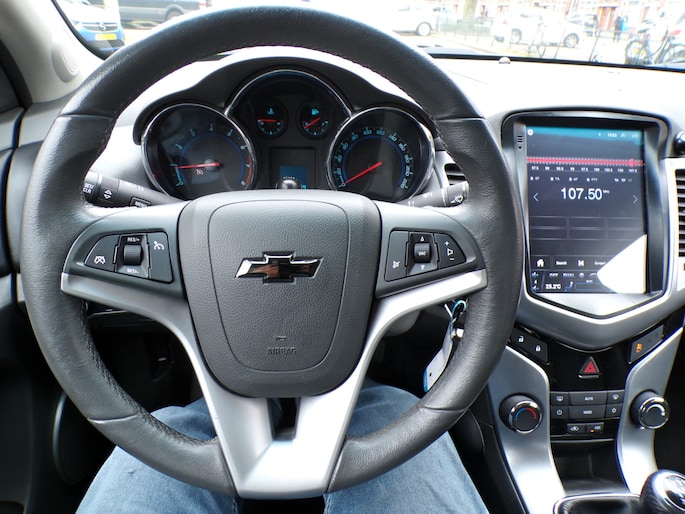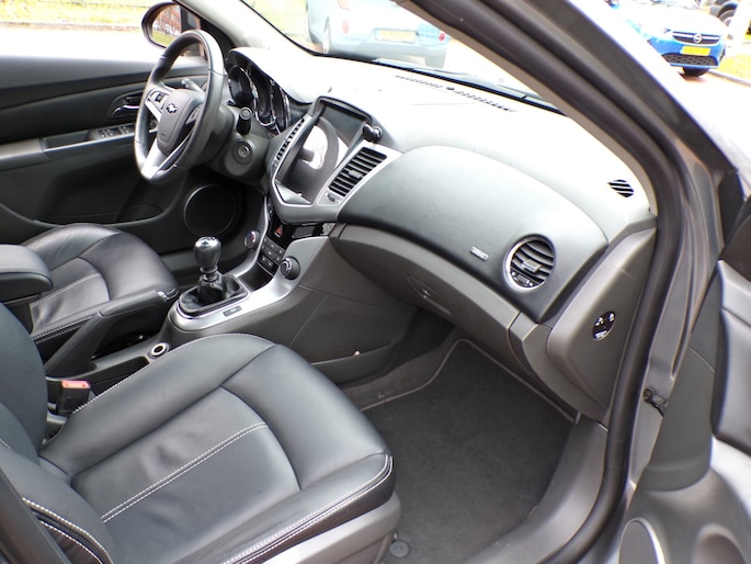 Deze Chevrolet is voorzien van knoppen op het stuur om het full map navigatiesysteem en het audiosysteem te bedienen. Parkeerplekken worden er niet ruimer op. Maar met de aanwezige parkeersensoren krijgt u deze Chevrolet Cruze zonder problemen op z'n plaats. Met de cruise control komt u bijna nog fitter aan dan u vertrekt. Deze auto heeft airconditioning aan boord. En dan is deze auto ook nog eens voorzien van lederen stuur, isofix-aansluiting, centrale deurvergrendeling met afstandsbediening, boordcomputer en lederen versnellingspook.