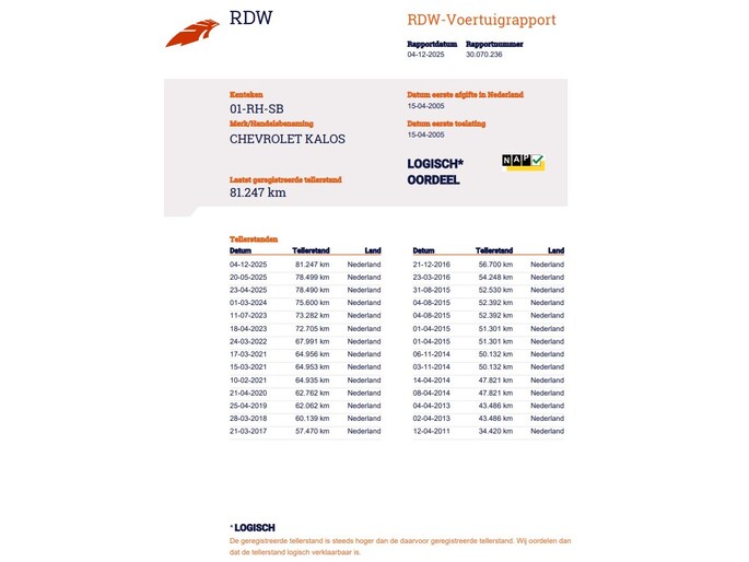 Kilometerstand gecontroleerd