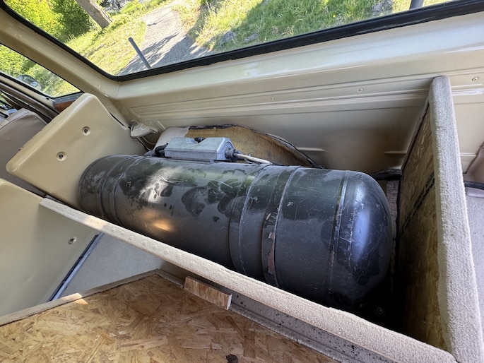 120 LITER LPG TANK; MOOI INGEBOUWD RECHTS IN DE KOFFERRUIMTE.