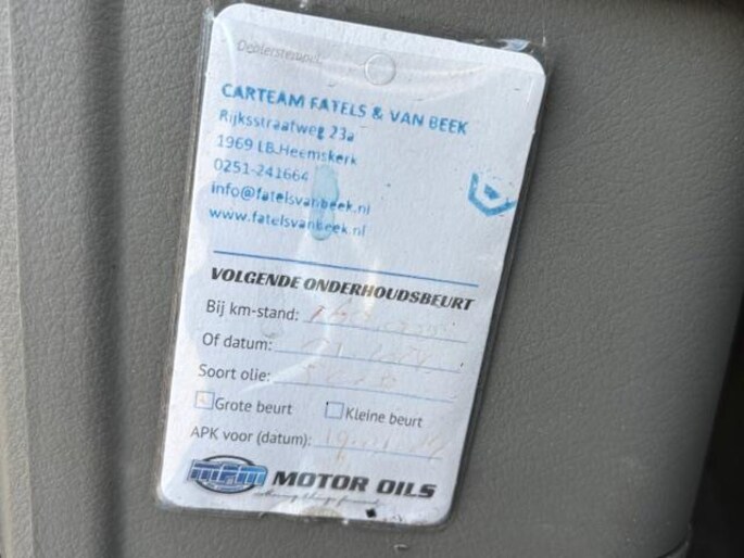 Dit afleverpakket bevat: Huisgarantie (3 maanden garantie); Geen nieuwe APK - Pakket Premium (€ 599): 3 maanden volledige garantie, grote onderhoudsbeurt ( olie, bougies, oliefilter, interieurfilter en luchtfilter vervangen) Nieuwe APK, Poetsen binnen en buiten