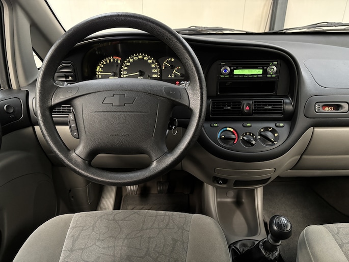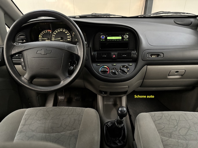 Met zijn ruimte en zijn prestaties is dit de auto die bij u past. Met zijn benzinemotor en handgeschakelde vijfversnellingsbak is dit een prima auto voor nog vele kilometers. Verder is de Chevrolet uitgerust met: 15 inch lichtmetalen velgen en getint glas. Onderweg kunt u veilig genieten van het audio-installatiesysteem. Want in deze Chevrolet bedient u het vanaf het stuurwiel. Vanzelfsprekend is deze auto ook van airconditioning voorzien. De uitrusting van deze auto is met centrale deurvergrendeling met afstandsbediening, verstelbaar stuur en lederen versnellingspook behoorlijk compleet. We laten u deze auto graag helemaal zien. Belt u ons voor een afspraak?