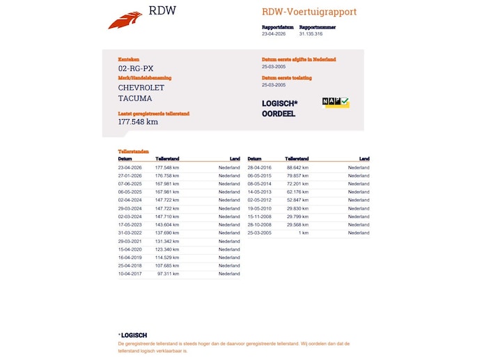 Kilometerstand gecontroleerd