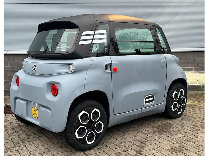 Met een topsnelheid van 45 km/h en een actieradius van 75km is hij perfect voor naar/van bijvoorbeeld school of de voetbalclub te rijden. Het opladen va de Citroën Ami duurt circa 4 uur.
