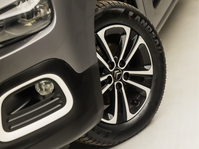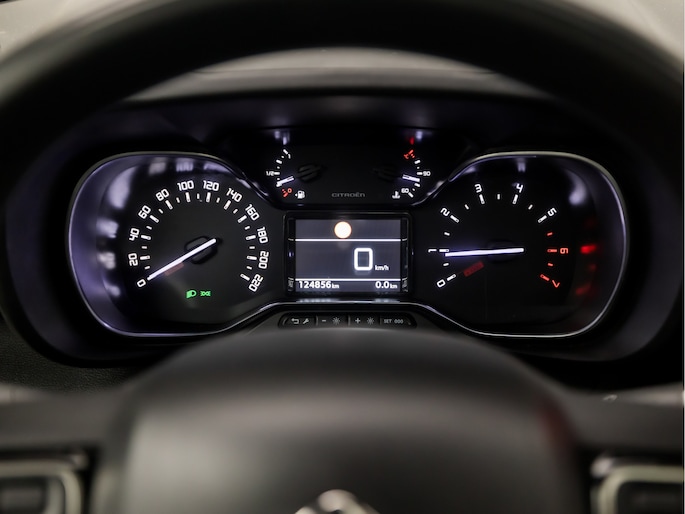 Pragmatisch en veilig als deze auto is, beschikt hij over diverse veiligheidssystemen. In het instrumentarium ziet u tijdens de rit ook de belangrijkste verkeersborden aangegeven, die de auto automatisch voor u leest. Het Lane-keeping systeem registreert permanent of u binnen de lijnen van de rijstrook blijft; dwaalt u onbedoeld af, dan waarschuwt het systeem en corrigeert de koers. De brake assist zorgt voor een kortere remweg tijdens een noodstop. Bovenop deze veiligheidsfeatures heeft deze Citroën bovendien hill hold functie en bandenspanningcontrolesysteem.