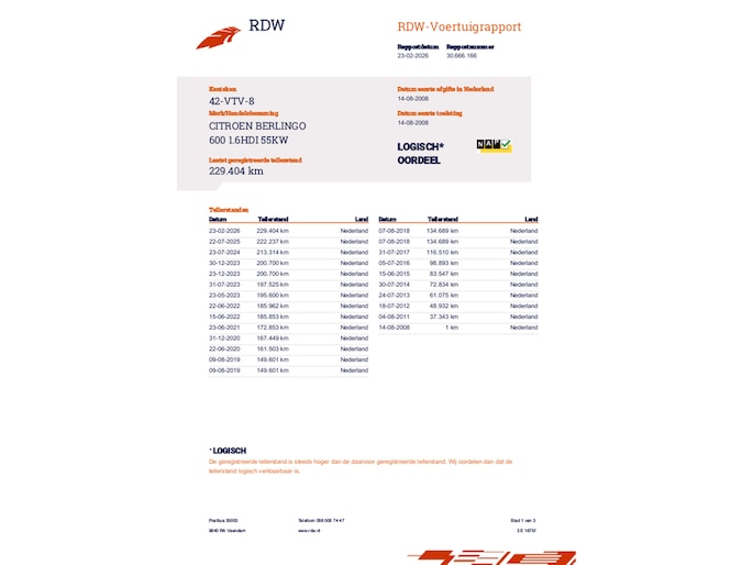 Kilometerstand gecontroleerd