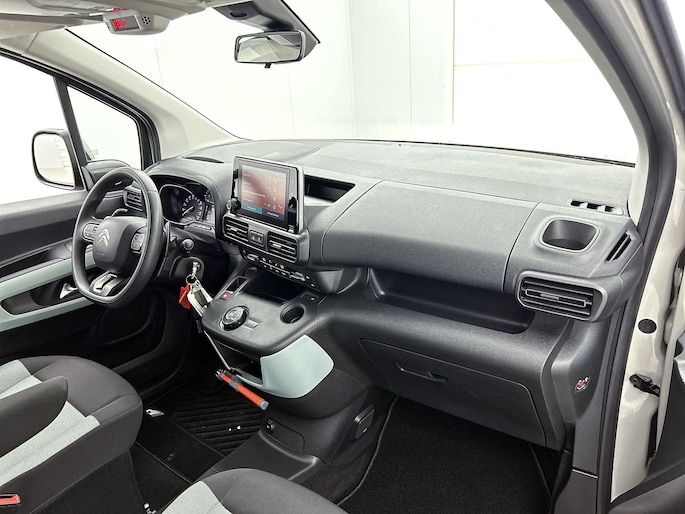 Alle technologie in de Citroen Berlingo is er op gericht om uw rit veilig en gemakkelijk te laten verlopen. De aandrijving komt voor rekening van een benzinemotor en een automatische transmissie. Het passagiersgedeelte van deze personenauto is voorzien van een schuifdeur. Dat betekent een royale instap zonder openslaande portieren! Bij de rijke uitrusting horen ook 16 inch lichtmetalen velgen, LED-dagrijverlichting, in delen neerklapbare achterbank en verstelbare lendensteunen.