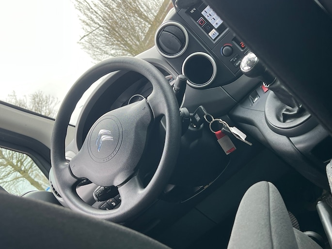 Inparkeren? Met de achteruitrijcamera heeft u er geen omkijken meer naar! In deze Berlingo vindt u schakelaars op het stuur om het navigatiesysteem te bedienen en het audiosysteem met DAB-ontvangst. Dankzij automatische airconditioning is het interieur behaaglijk warm of verfrissend koel. Natuurlijk is een complete auto als deze ook voorzien van sensoren die de omgeving in de gaten houden. Deze Citroen heeft niet alleen een automatisch inschakelbare verlichting aan boord, maar ook een regensensor. Zuinig en zeker zoeven? Dan is de cruise control ideaal! Natuurlijk behoren centrale deurvergrendeling met afstandsbediening, boordcomputer en verstelbaar stuur ook tot de uitrusting van deze complete auto.