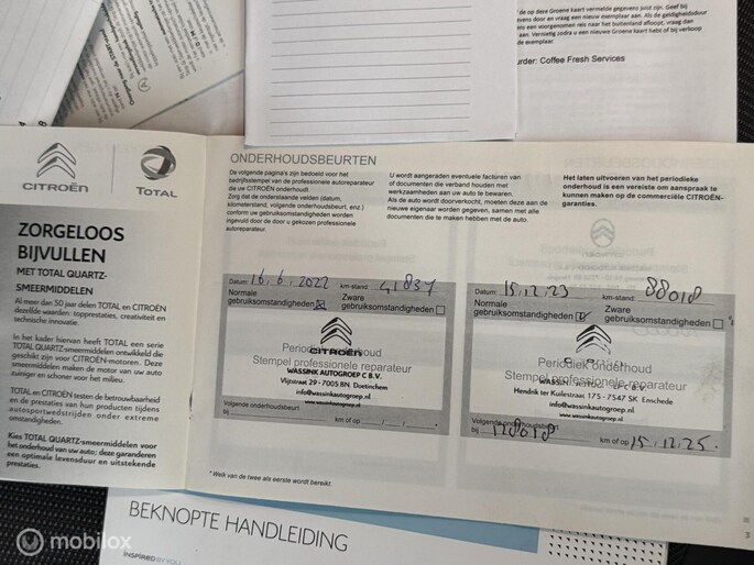 Onderhoudshistorie aanwezig: Ja