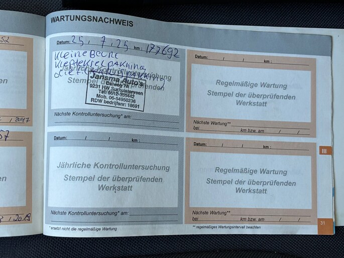 Onderhoudsboekjes: Aanwezig