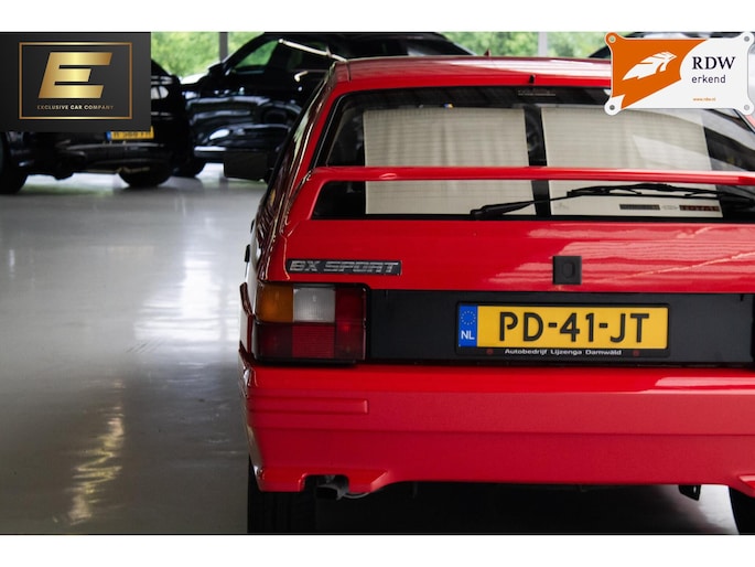 Maar even zonder gekkigheid! Deze Citroen BX Sport is de enige echte auto uit de Flodder film. De auto is volledig gerestaureerd door een Citroen dealer. Dit restauratieproces heeft 2 jaar geduurd. De auto heeft daarna binnen gestaan en is niet/nauwelijks meer mee gereden. Het motorblok is gereviseerd en zelfs de stickers die er af fabriek op moeten zitten in de motorkap zijn nieuw geproduceerd en teruggeplaatst. Verder zijn zaken zoals de gordijntjes achter opnieuw gestoffeerd. Interesse? Mail, bel of WhatsApp ons!
