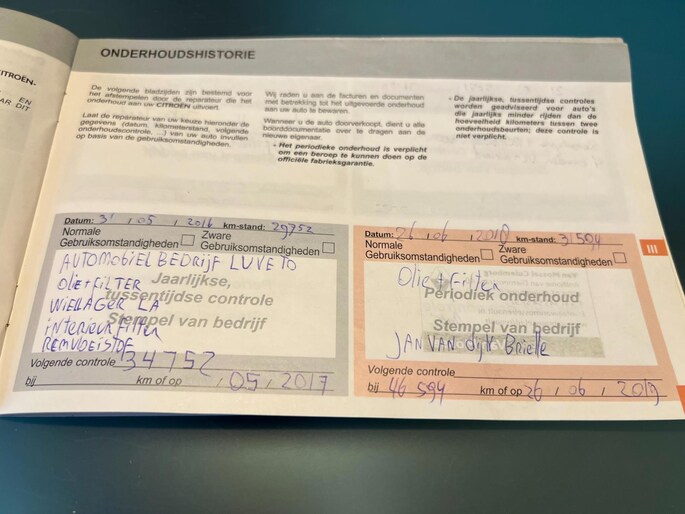 Onderhoudsboekjes: Aanwezig