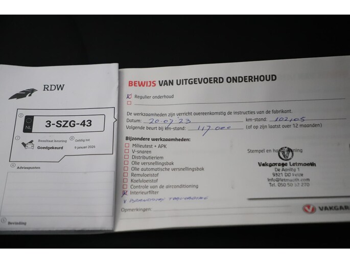 Inbegrepen afleverpakket: Standaard: Wettelijke garantie, geldige APK, en RDW-leges.