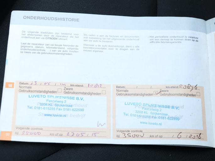 Onderhoudsboekjes: Aanwezig
