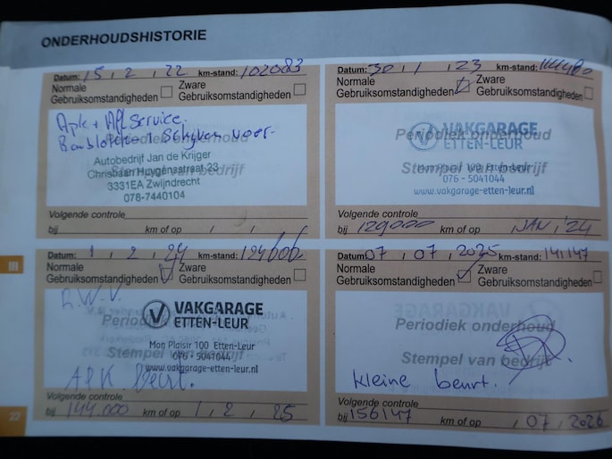 Onderhoudsboekjes: Aanwezig