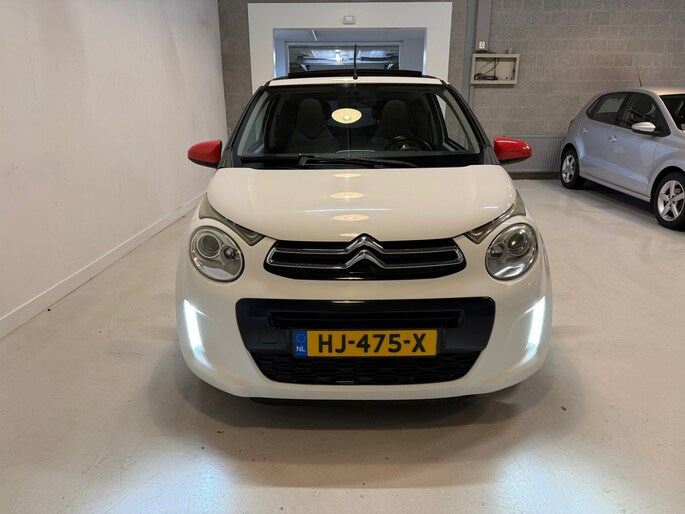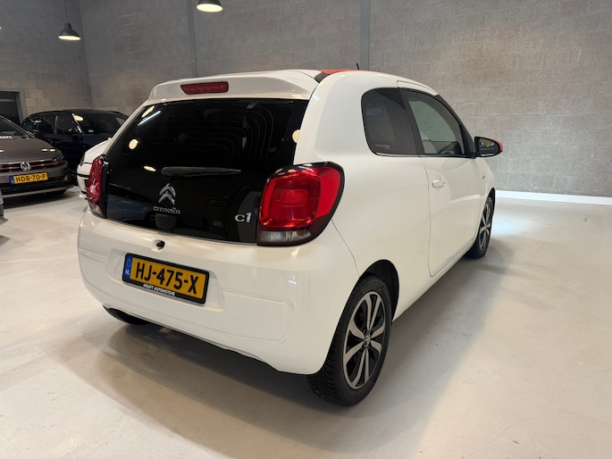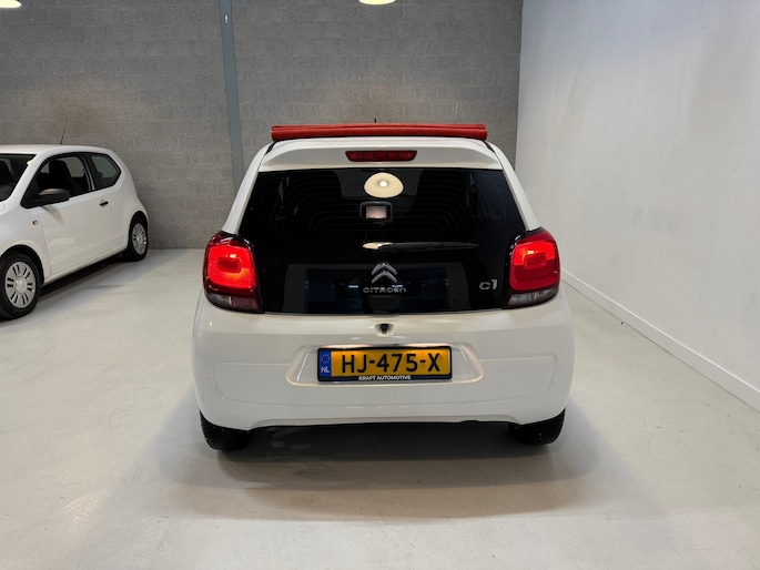 Te koop aangeboden: een Citroën C1 Cabrio uit 2015, een compacte en zuinige auto met een sportieve uitstraling. Deze C1 is voorzien van een cabrio dak, rode spiegels en een rood dak, wat hem echt onderscheidt van andere C1’s.