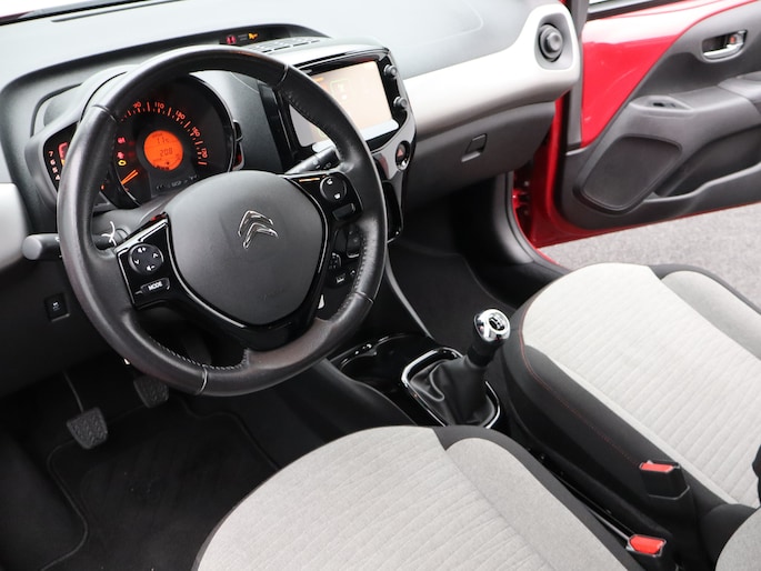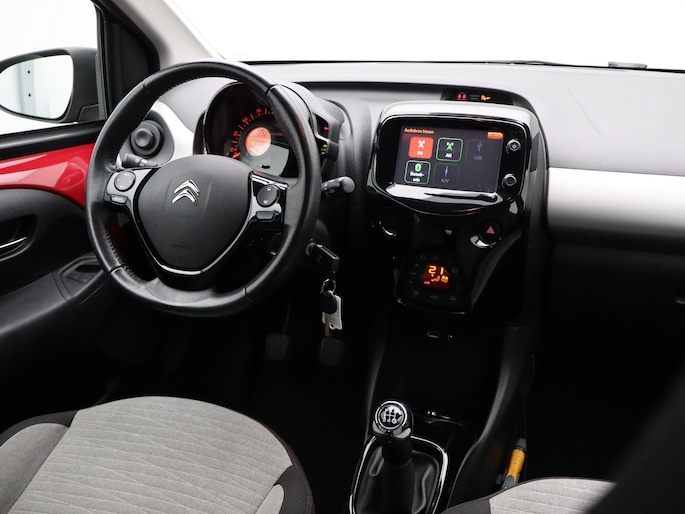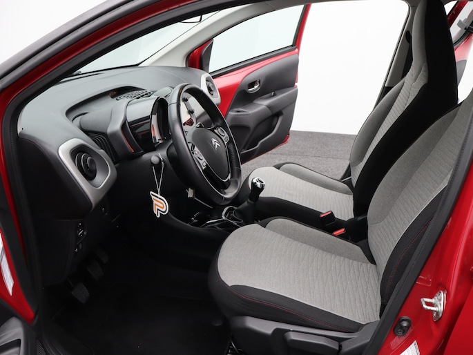 Jaloersmakend behendig in de drukke stad, wendbaar op de vierkante meter en toch een royaal ruimtegevoel voor alle inzittenden. Wat een heerlijke compacte auto, deze Citroen C1! De motor maakt een vlotte rijstijl mogelijk en is toch zuinig met brandstof. Bij de zeer complete uitrusting van deze auto behoren ook 15 inch lichtmetalen velgen, LED-dagrijverlichting, extra getint glas en in delen neerklapbare achterbank. U ziet geen paaltje meer over het hoofd dankzij de achteruitrijcamera. Onderweg geniet u van de kwaliteit van het audiosysteem. De bediening is bovendien gemakkelijk via knoppen op het stuur. Bij de luxe van deze auto hoort ook automatische airconditioning. Ook lederen stuur en versnellingspook, centrale deurvergrendeling met afstandsbediening en boordcomputer horen tot de voorzieningen op deze auto. Zoals u mag verwachten van deze Citroen C1 is hij uitgerust met een reeks aan actieve veiligheidssystemen. Als elke meter en elke seconde telt, wilt u dat het remsysteem maximaal presteert. Met de Brake Assist bent u daar zeker van. De auto is ook uitgerust met hill hold functie en bandenspanningcontrolesysteem. U bent nieuwsgierig? Bel of mail ons dan direct om een proefrit met deze Citroen te reserveren.