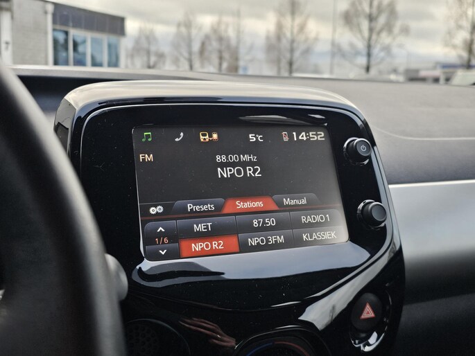 Kom maar, kom maar, kom maar... ho! Prettig hoor, zo'n achteruitrijcamera. Een goede veiligheidsvoorziening is de stuurbediening voor belangrijke functies. Het audiosysteem biedt glasheldere geluidskwaliteit. Natuurlijk heeft deze auto ook airconditioning. Natuurlijk behoren lederen stuur en versnellingspook, centrale deurvergrendeling met afstandsbediening en boordcomputer ook tot de uitrusting van deze complete auto.