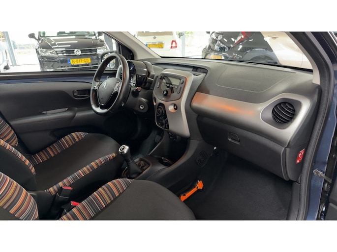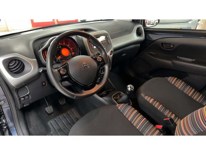 De metallic lak van deze Citroen C1 geeft de auto een luxe uitstraling en zorgt ervoor dat je in stijl de weg op gaat. Met vijf deuren is het gemakkelijk om passagiers te verwelkomen en kunnen zij moeiteloos instappen en plaatsnemen in het ruime interieur van de auto.