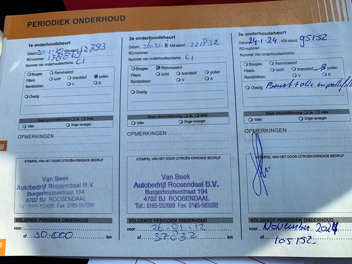 Onderhoudsboekjes: Aanwezig