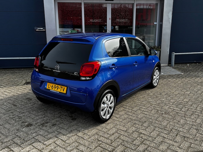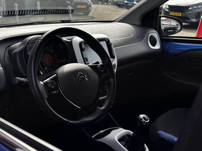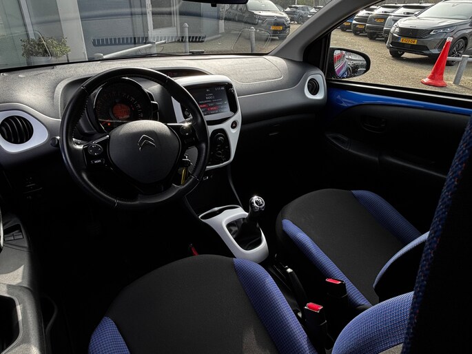 Ook compacte auto's kunnen volop ruimte en comfort bieden, dat bewijst deze Citroën C1. Met zijn pittige benzinemotor stuurt u deze auto gemakkelijk en vlot door het verkeer. U wordt in deze auto ook getrakteerd op LED-dagrijverlichting, extra getint glas, in delen neerklapbare achterbank en snelheidsafhankelijke stuurbekrachtiging. Zodra u naar de 'R' schakelt, gaat de achteruitrijcamera in werking en heeft u een perfect zicht op alles wat zich achter de auto afspeelt. Onderweg geniet u van de kwaliteit van het audiosysteem met dab-ontvangst. De bediening is gemakkelijk via knoppen op het stuur. Ja, airconditioning is er natuurlijk ook in deze auto. Ook is de Citroën uitgerust met: lederen stuur, centrale deurvergrendeling met afstandsbediening en boordcomputer. Pragmatisch en veilig als deze auto is, beschikt hij over diverse veiligheidssystemen. Een noodstop maken doet u liever niet. Maar áls het nodig is, geeft de Brake Assist maximale ondersteuning. Als dit de auto is die u zoekt, wacht dan niet langer en plan direct online een proefrit.