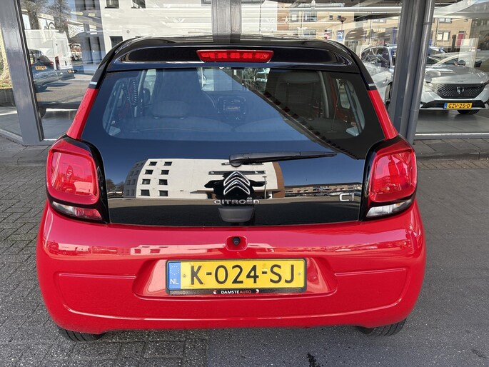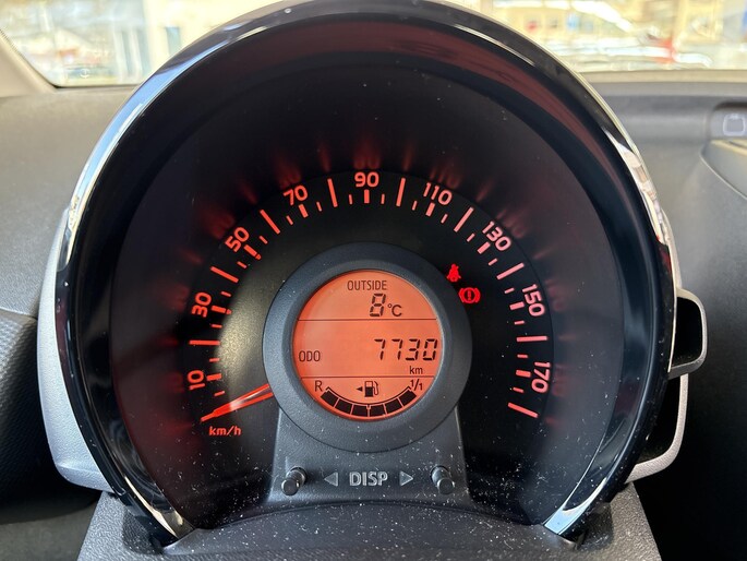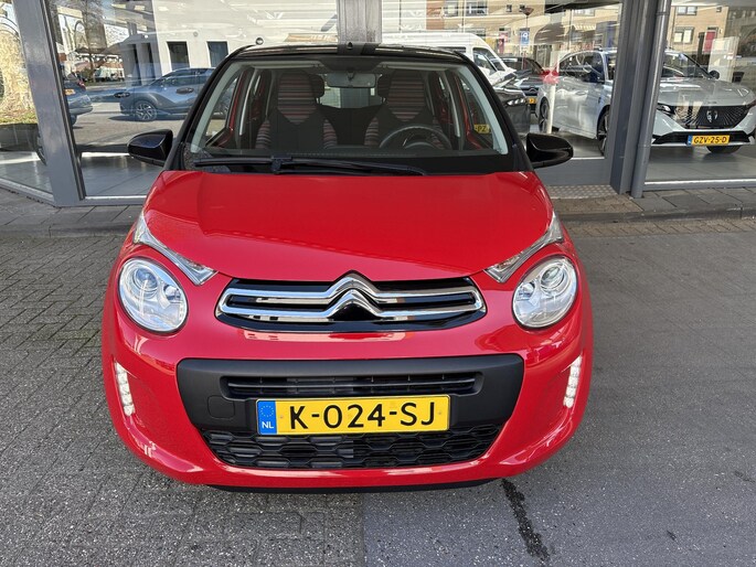 Met slechts 7.730 kilometer op de teller verkeert deze C1 in absolute topstaat; hij is nieuw door ons geleverd en onderhouden. De frisse rode lak in combinatie met het sportieve two-tone zwarte dak geeft de auto een moderne en opvallende uitstraling.