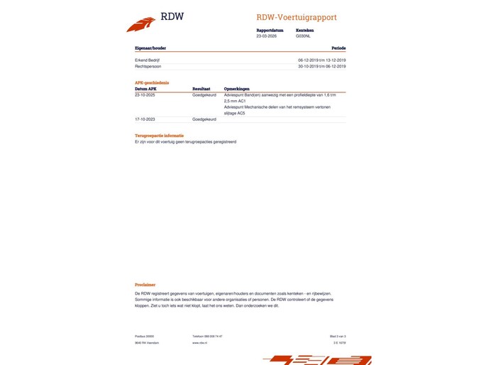 NAP (Nationale AutoPas) en reservesleutel zijn aanwezig!