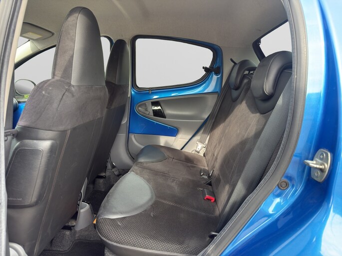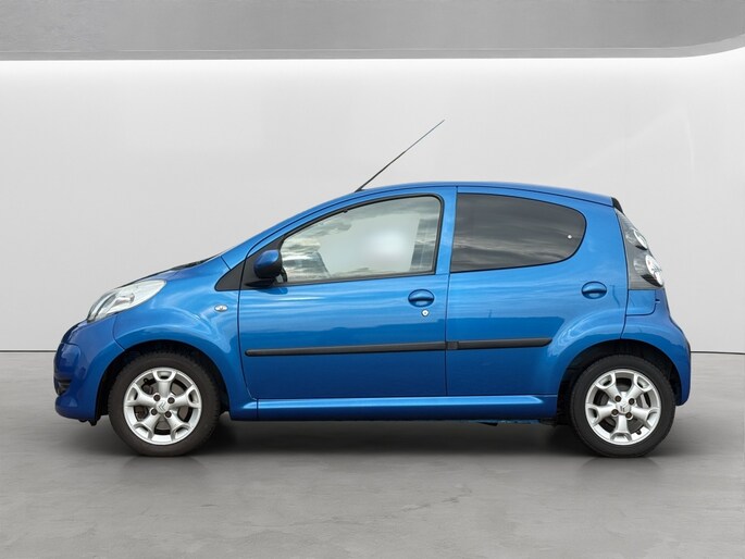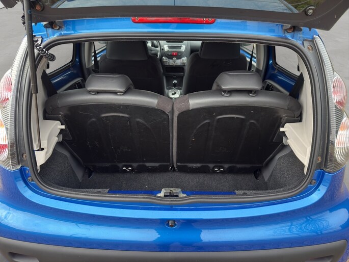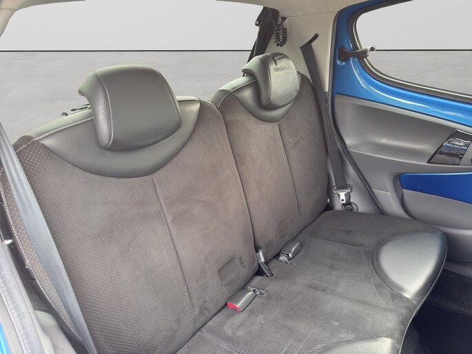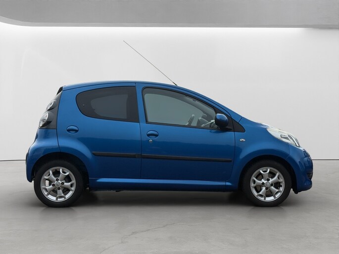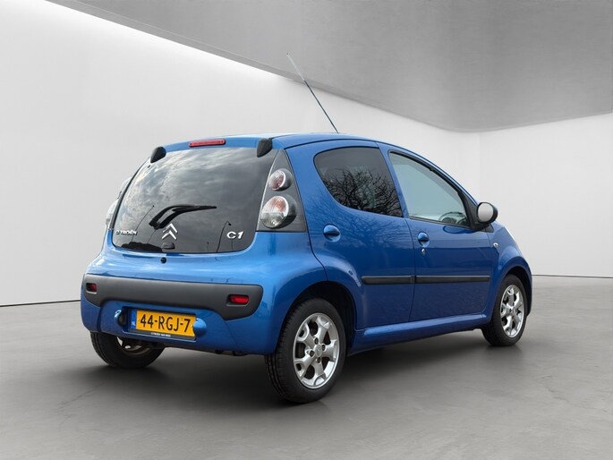 Het exterieur van deze Citroen C1 Exclusive is uitgevoerd in een elegante blauwe kleur met een prachtige metallic lak, wat zorgt voor een opvallende uitstraling op de weg. De extra getinte ramen achter bieden niet alleen extra privacy, maar dragen ook bij aan het moderne design van de auto.